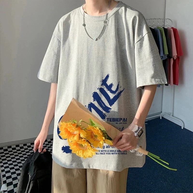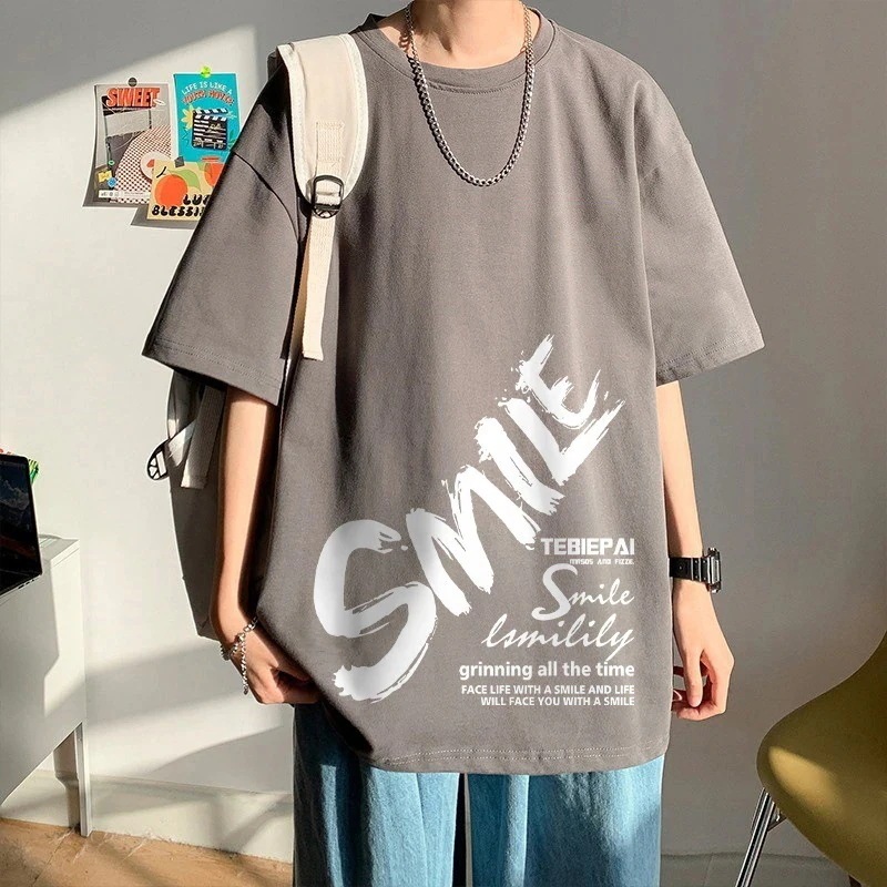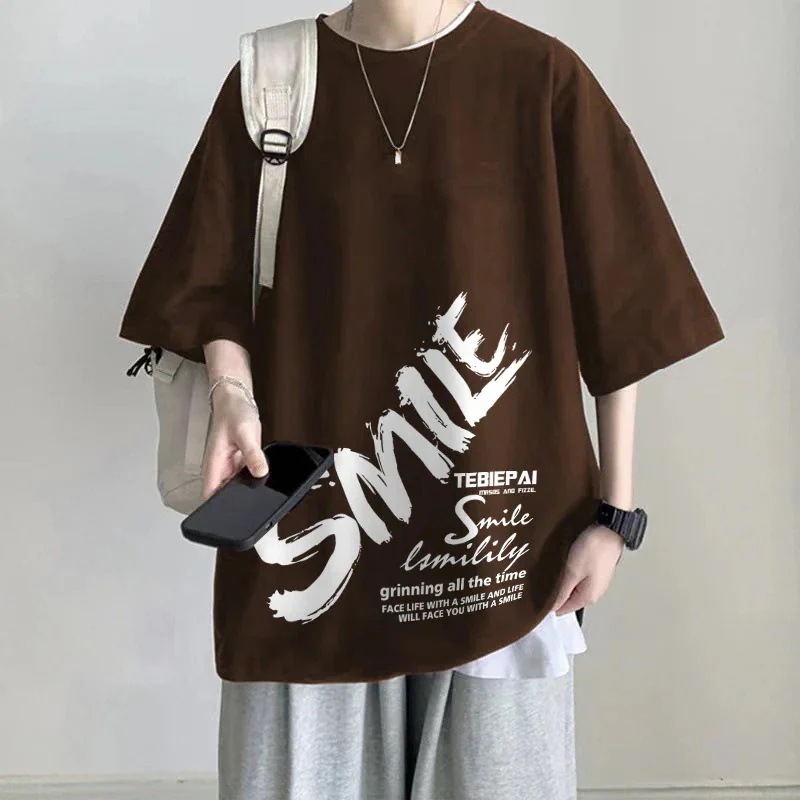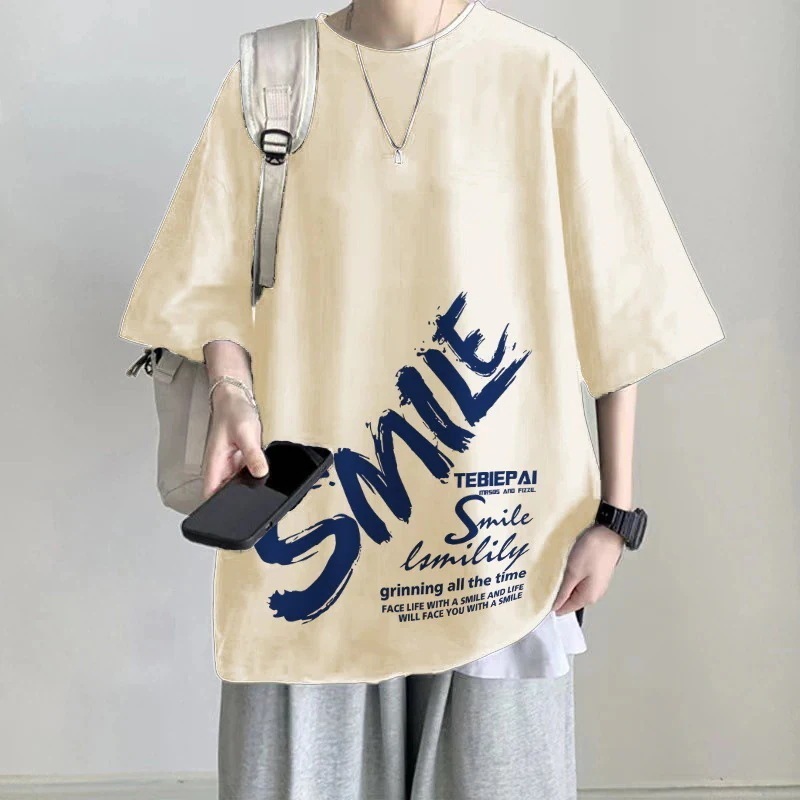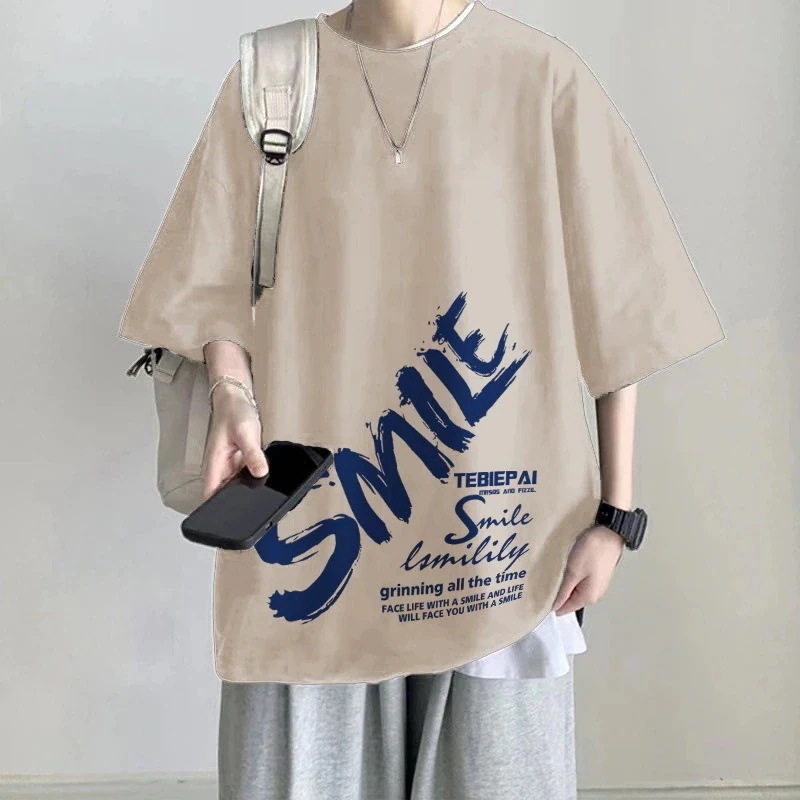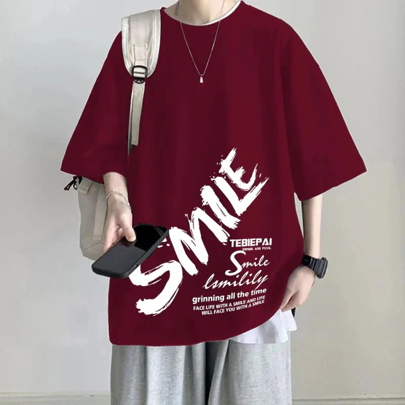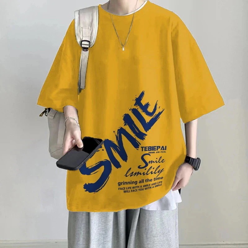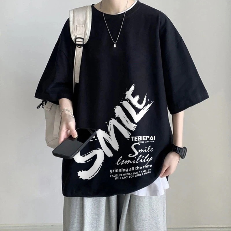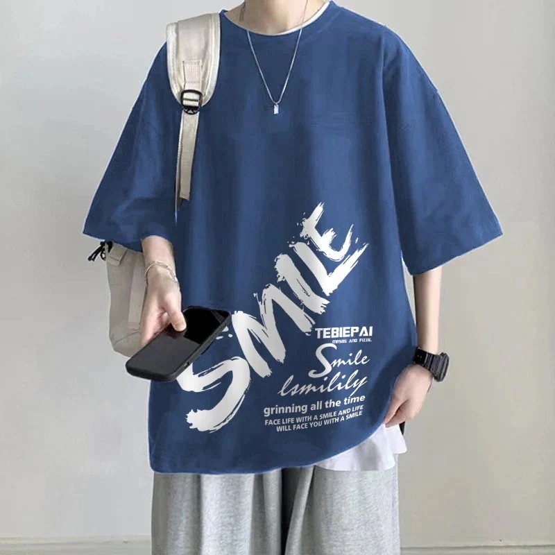 メンズ Tシャツ 大きいサイズの夏の半袖Tシャツメンズゆるハーフスリーブラウンドネック5分袖トップス