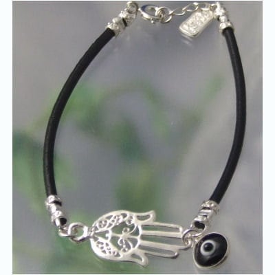 在庫処分半額 One of A Kind 革紐ブレスHAMSA&EYE BHE31 BK SILVER