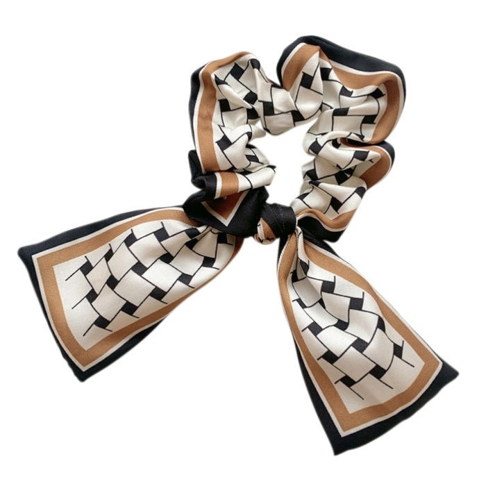 【即納】シュシュ ヘアアクセサリー リボン スカーフ柄 バイカラー マスタード ベージュ アイボリー ブラック ボルドー ボリューム