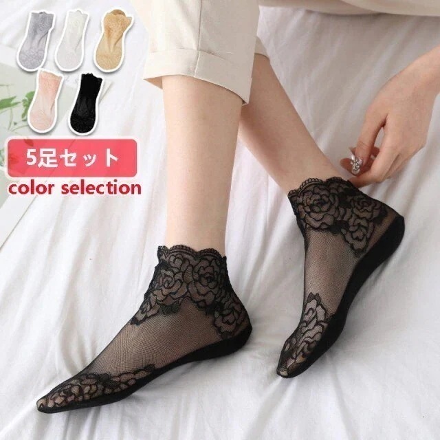 [2025新作]20代30代40代50代 夏用 薄い涼しい おしゃれなレース柄ソックス レディース靴下 5足セット