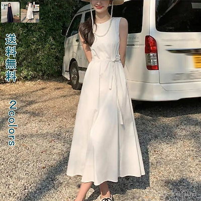2つ買うと300円割引!!春夏 通学 通勤 お出かけ 体型カバー ノースリーブ カジュアル ふんわり 華奢見え すっきり ロング丈 無地 春 ンピース春夏 通学 通勤 お出かけ 体型カバー