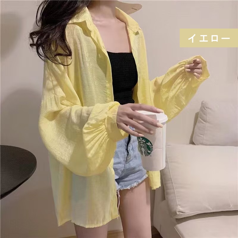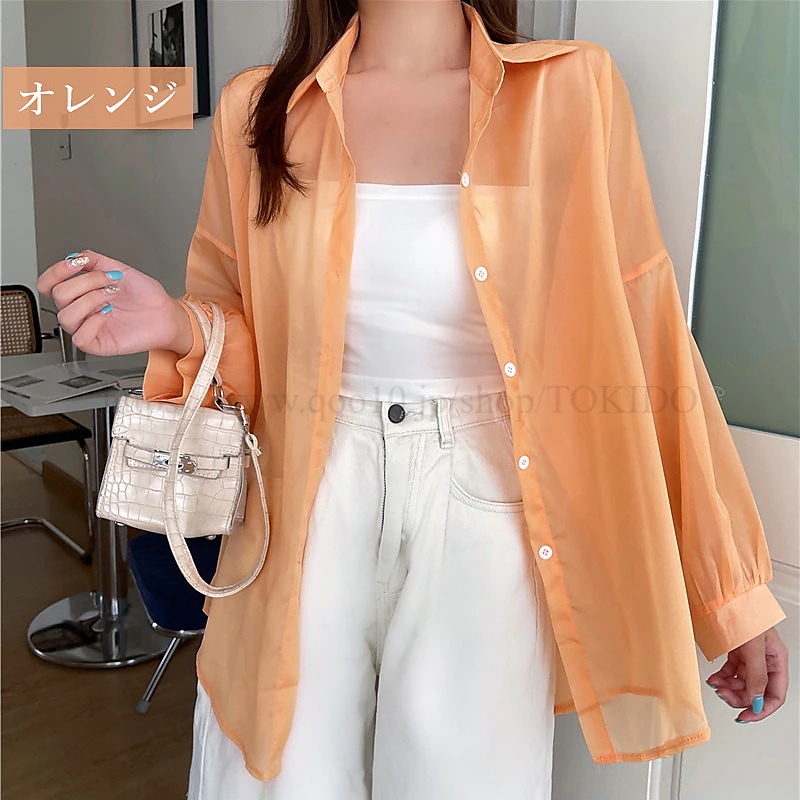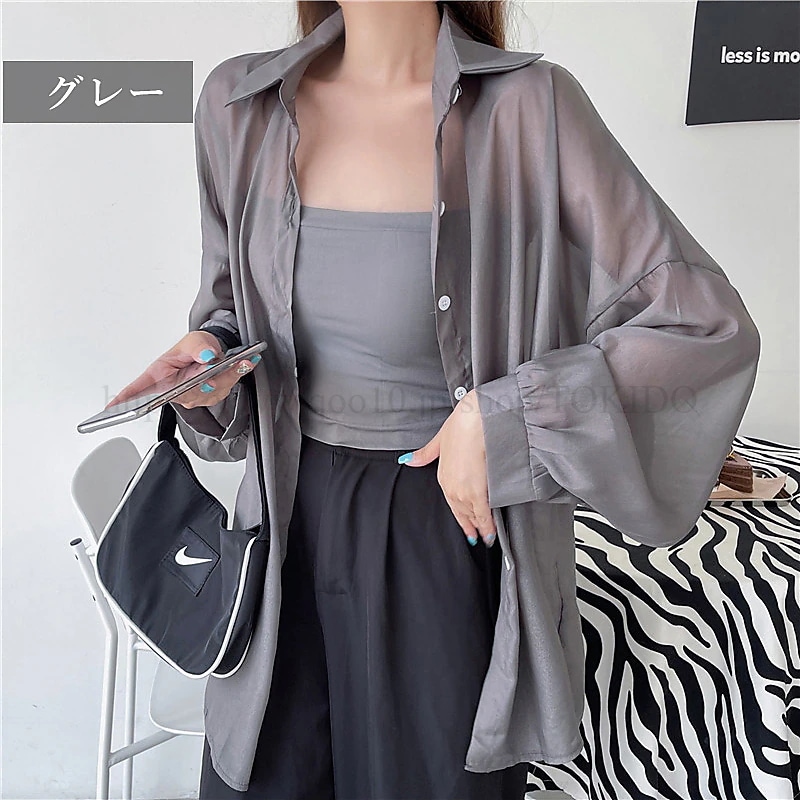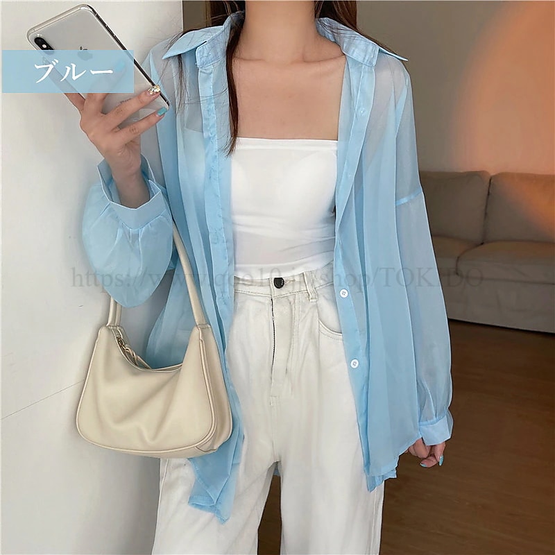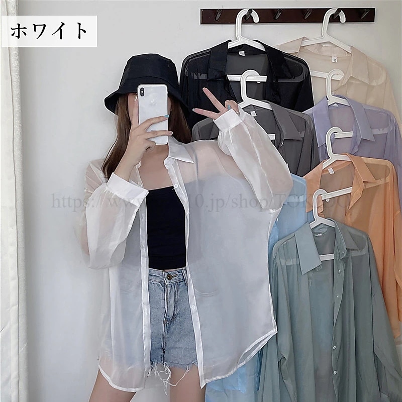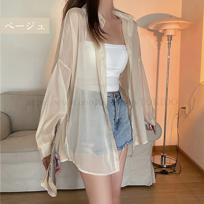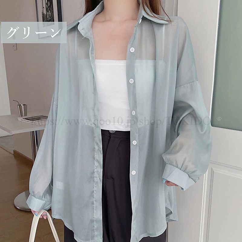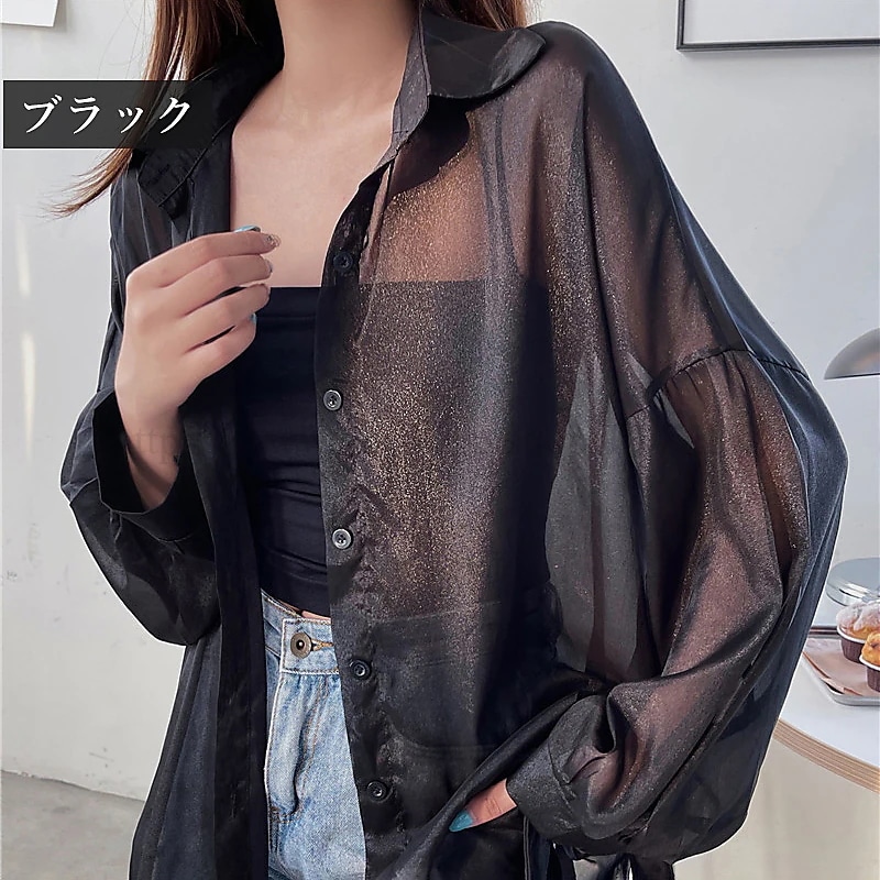 シアーシャツ 透け感 レディース 日焼け止め ブラウス 長袖 シアートップス シースルー シャツ 重ね着 オーバーサイズ カジュアル おしゃれ ゆったり 日焼け対策 羽織 夏物