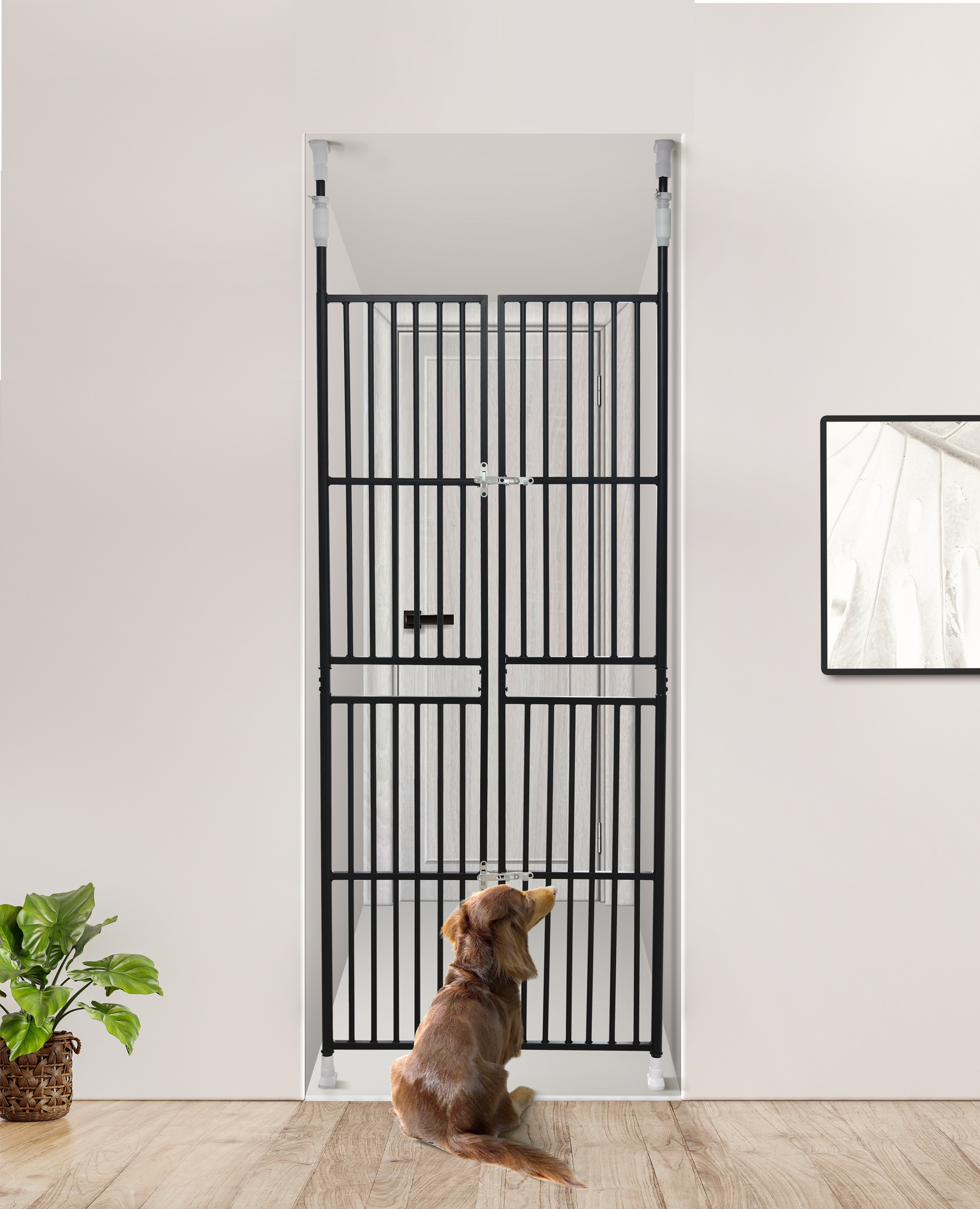 ペット高さ調節対応 191~255cm ドア ケージ 留守番 保護 ネコ 脱走防止 柵 フェンス 脱走防止 猫用 多頭飼い 多頭 スチール ペットケージ 新生活【ブラック】