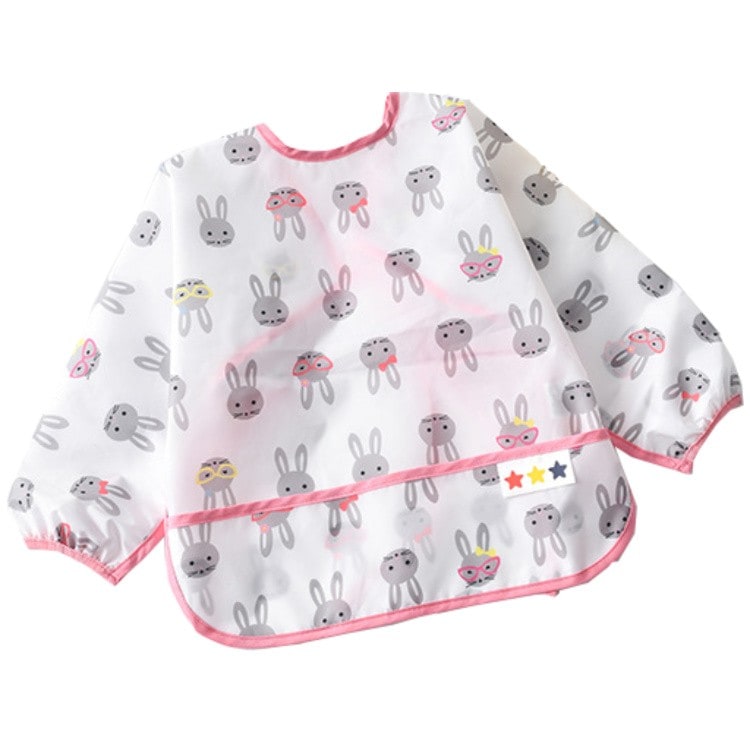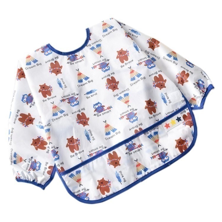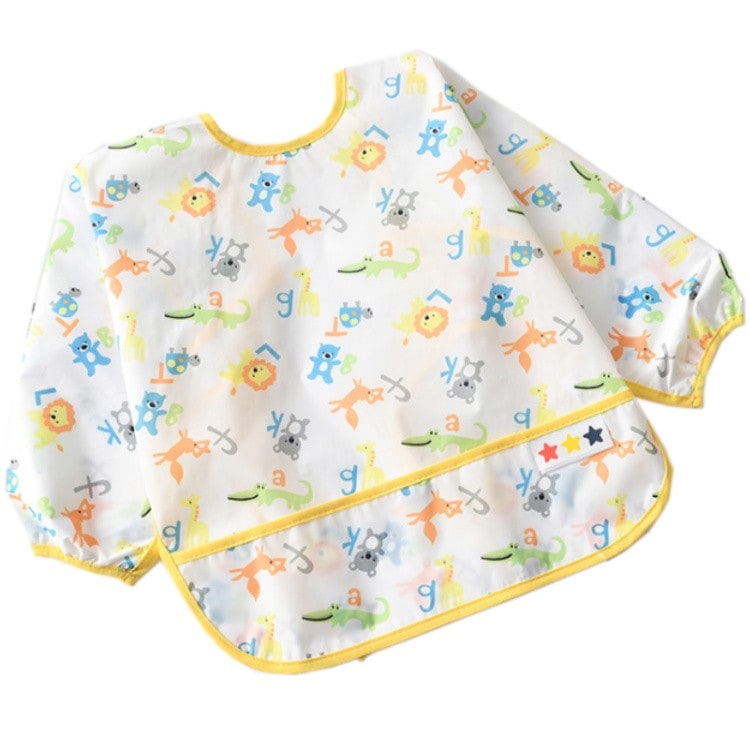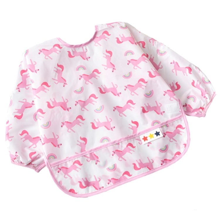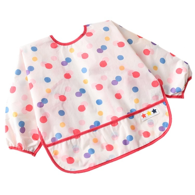 【急速出荷】お食事エプロン スタイ 長袖 洗える エプロン よだれかけ かわいい おしゃれ 袖付き 防水 ポケット 食事 赤ちゃん ベビー 女子 男子 ロング 柄 洗濯機