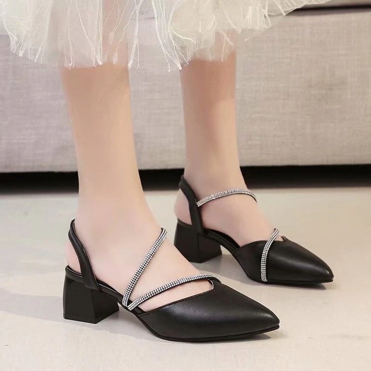 レディースファッションサンダル フェアリー風 2026年夏 トゥキャップ 太ヒール ラインストーン ハイヒール スカートに合うレディースシューズ ウェッジヒール