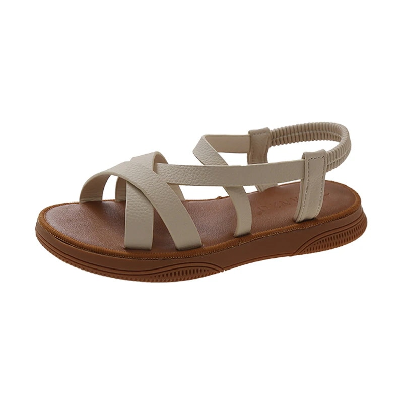2026年新作 ローマ風サンダル レディース ソフトソール ゴムバンド付きサンダル 厚底で履き心地 フェスティバル風 ビーチ用フラットサンダル レディース 厚底