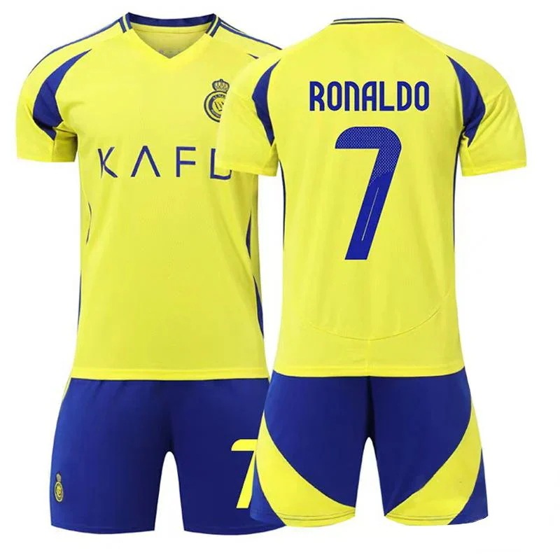 P「番号 個人名カスタマイズOK」クリスティアーノ・ロナウド アル・ナスル 大人用子供用 上下着 ユニフォーム サッカーウェア 2425リヤド勝利ユニホーム