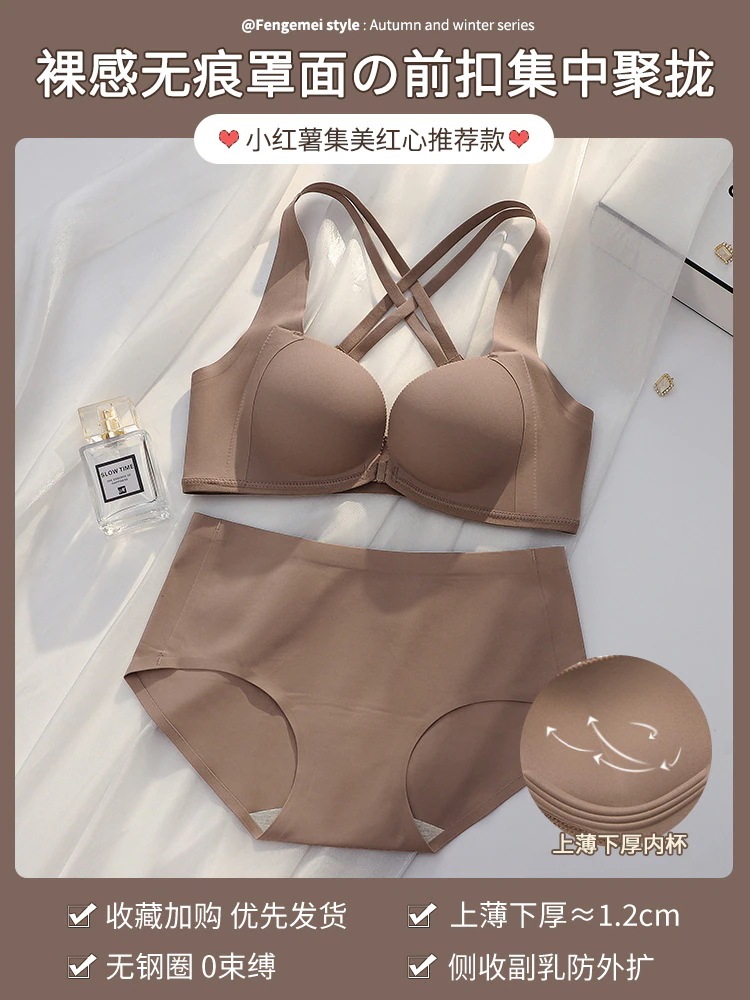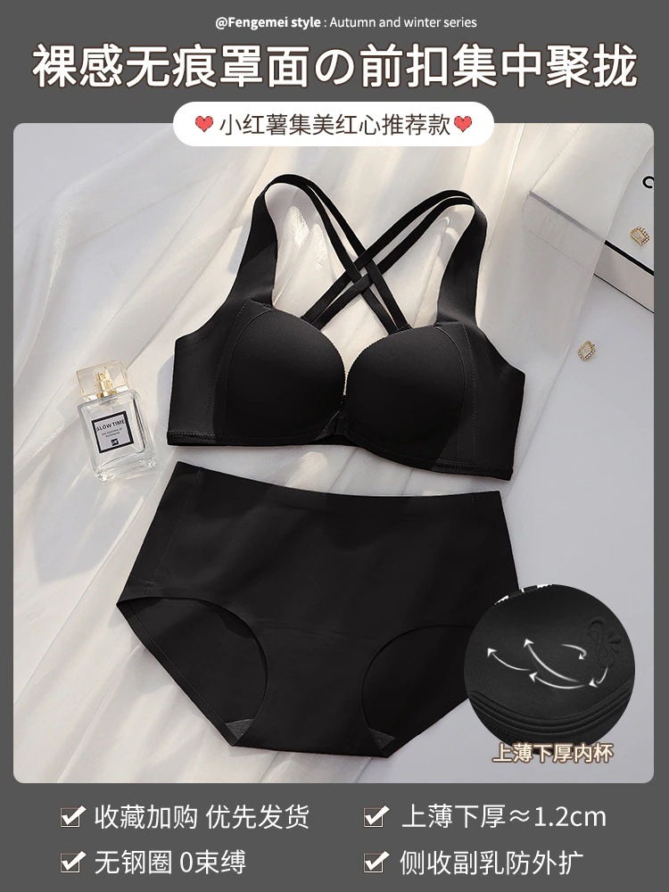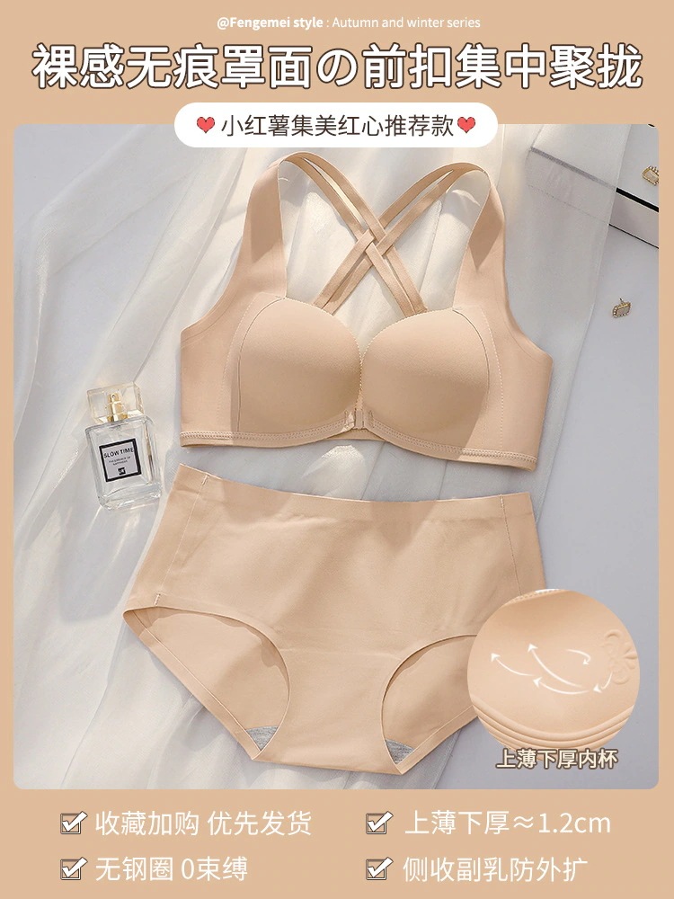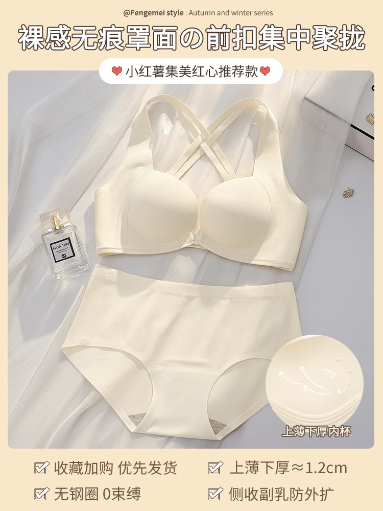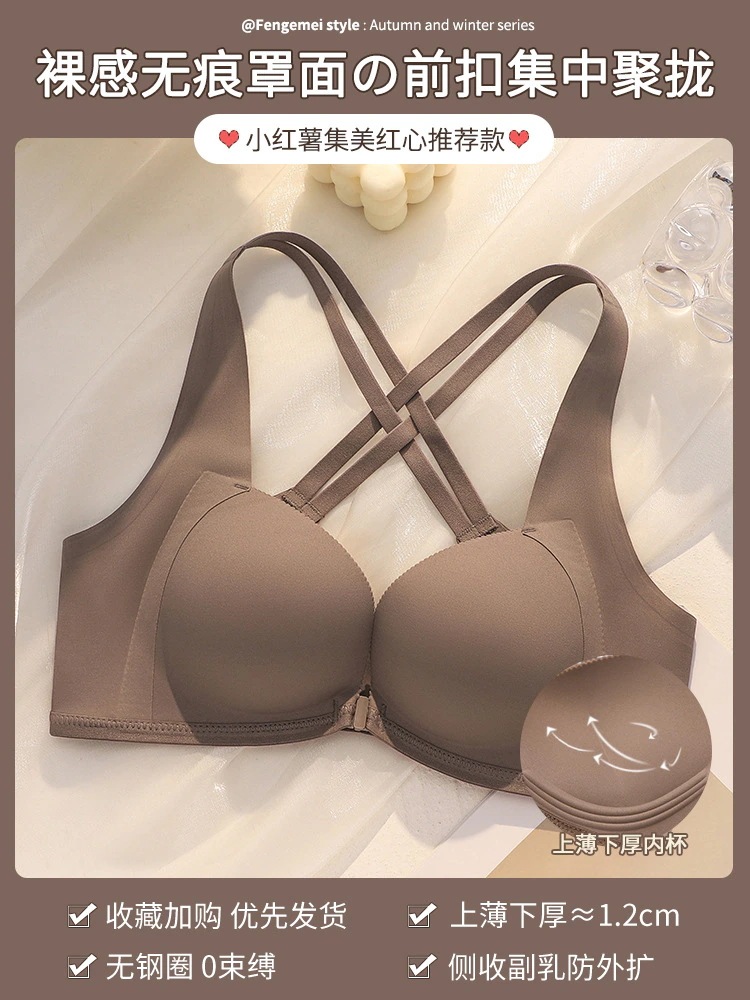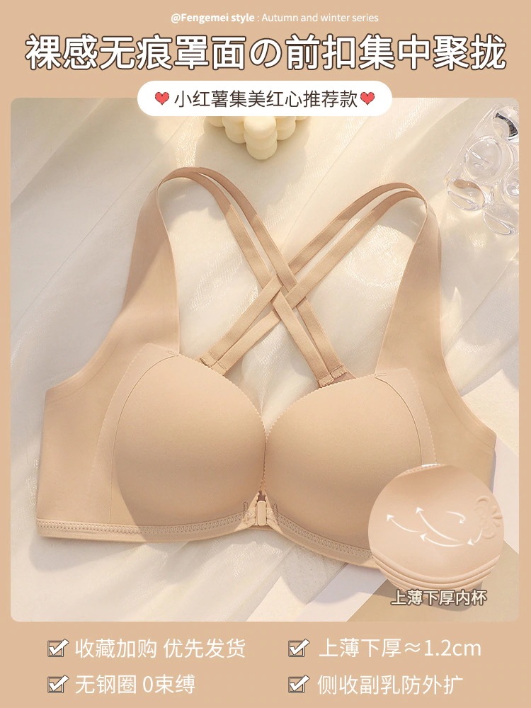 クロスバック・フロントホックブラ(女性用) 小さめのバスト用・寄せ上げ効果 シームレス・ワイヤーレス 脇の肉をすっきりと整える ブラセット