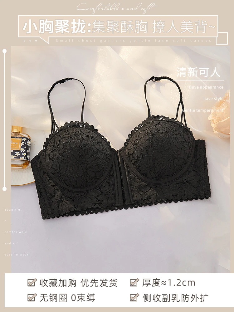 フロントホックブラジャー 小胸でも大きく見せる 夏用 薄手 細ストラップセット ホワイトの背中が美しいブラジャー