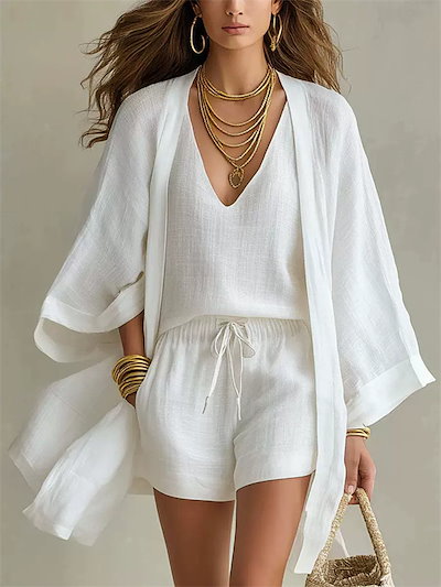 レディース セットアップ 上下セット 薄手 3点セット 綿麻 ベスト コート パンツ 涼しい セット シンプル ゆったり
