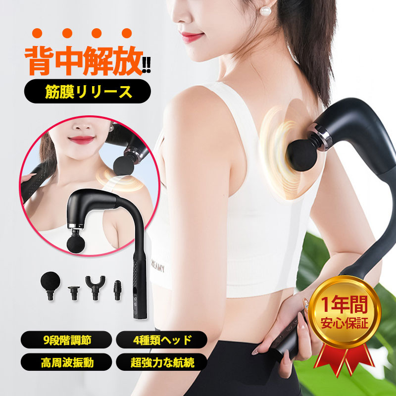 マッサージガン 軽量 筋膜リリースガン 背中 マッサージ マッサージ機 筋膜リリースガン 全身 マッサージ器 小型 4種類ヘッド 9段階強度 腰 足 肩 首