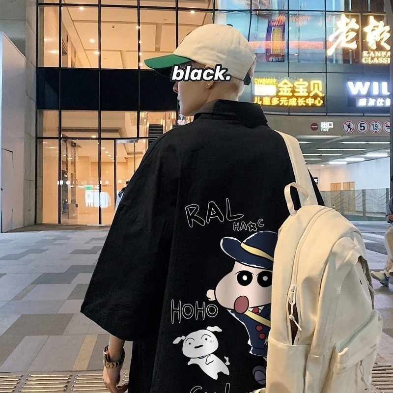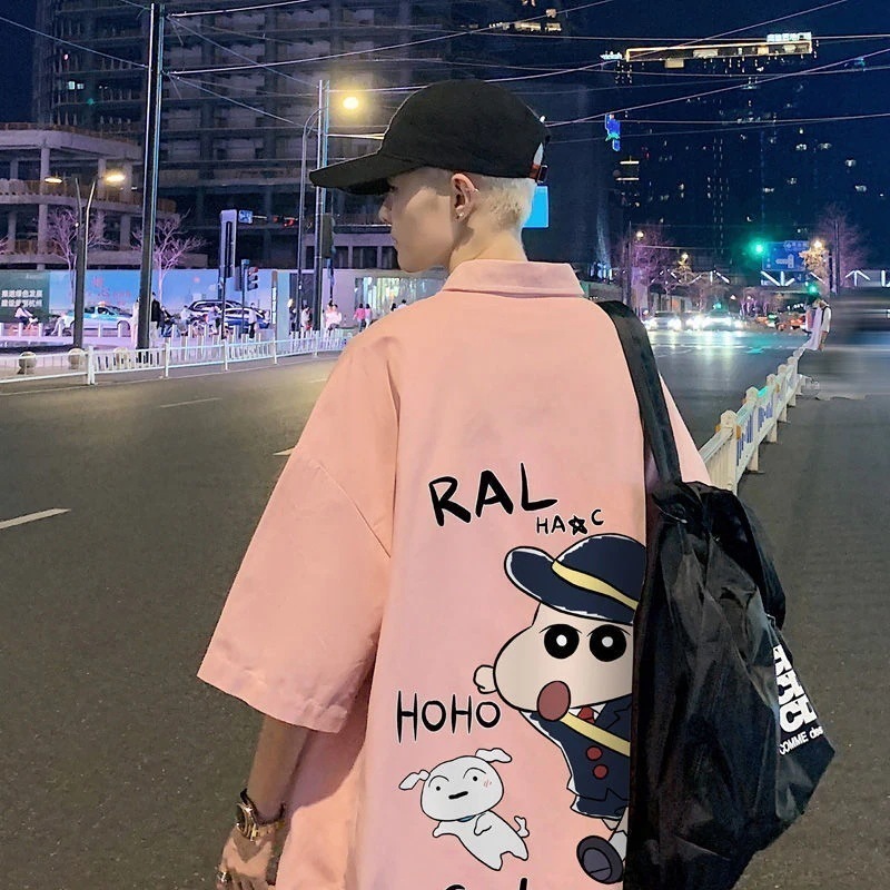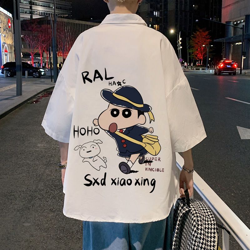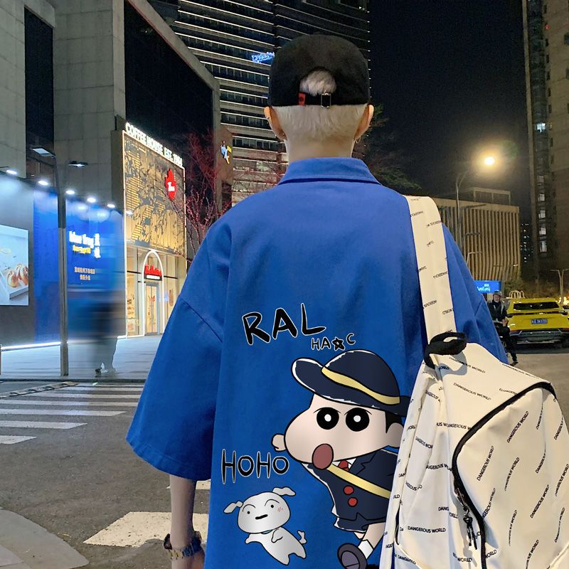 クレヨンしんちゃん氷糸半袖シャツ男夏ゆるいカジュアルコート日系トレンド青少かっこいいシャツ