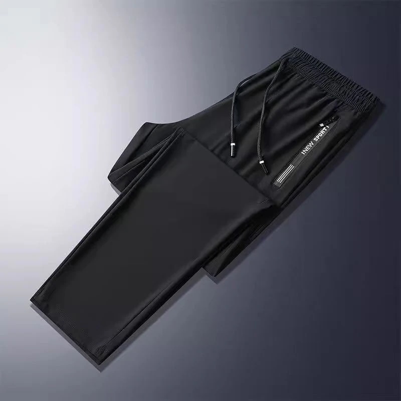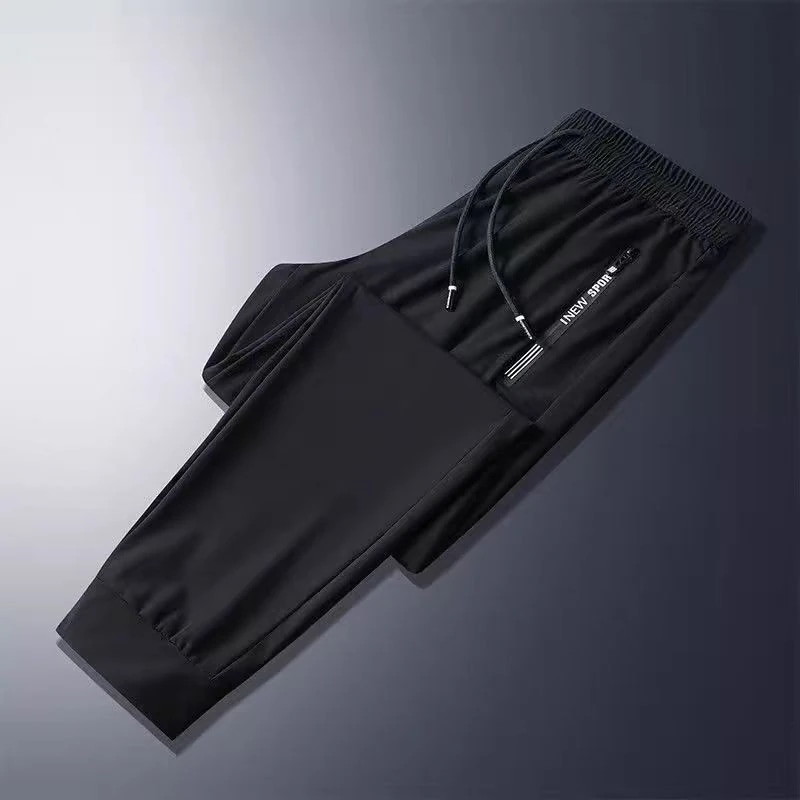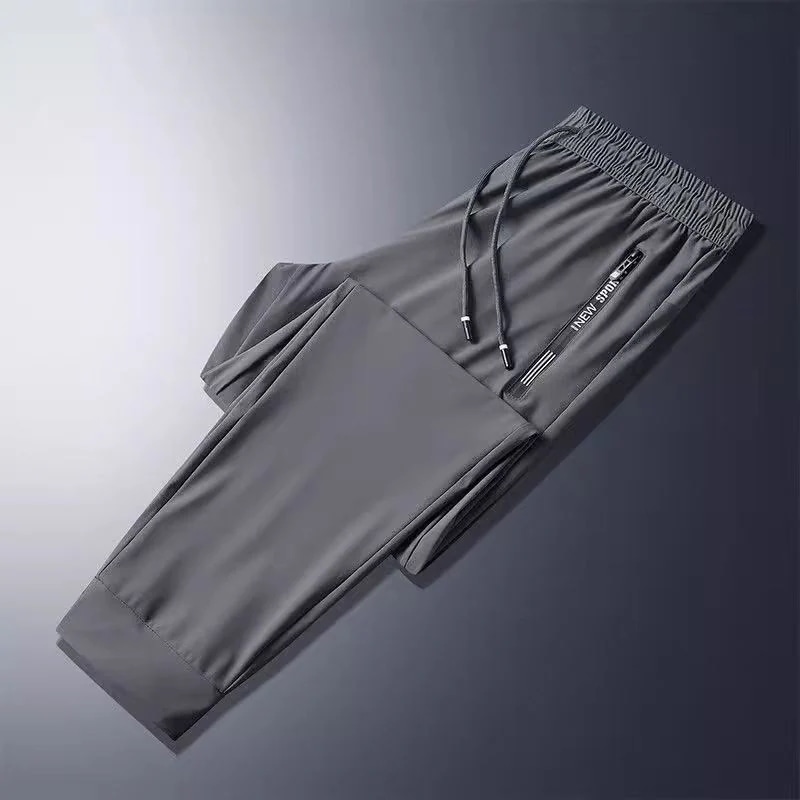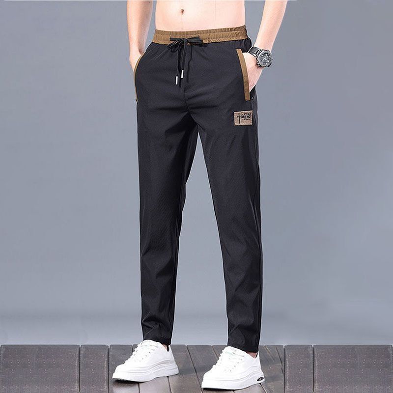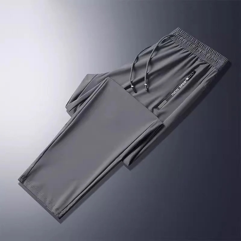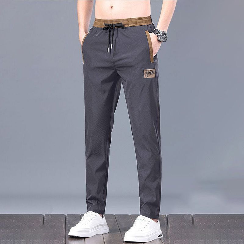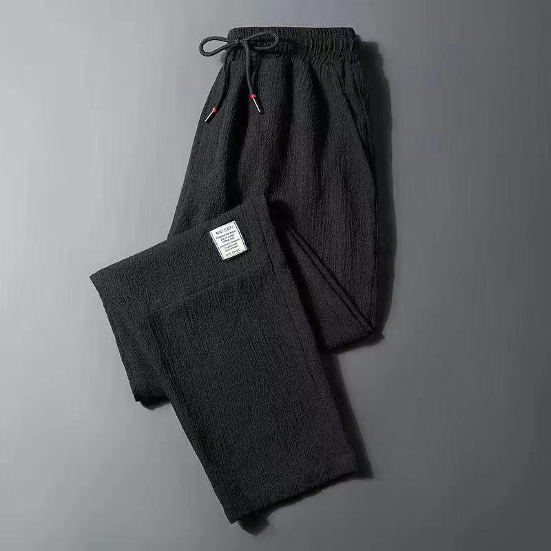 【本日限り配達料無】ゆったり冷感無地パンツメンズ夏薄手アイスシルクウエストパンツカジュアルロングパンツins潮ストレートダウン感ゆったりスポーツ九分パンツ