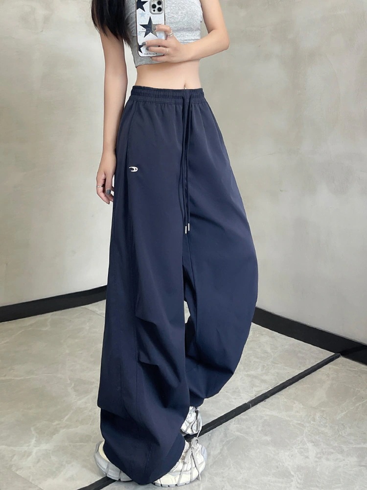 カーゴパンツ レディース パンツ 刺繍 ズボン夏秋 涼しい 速乾通気性で爽快ハイウエストワイドパンツ ダンス衣装 ズボン ウエストゴム 美シルエット イージーパンツ