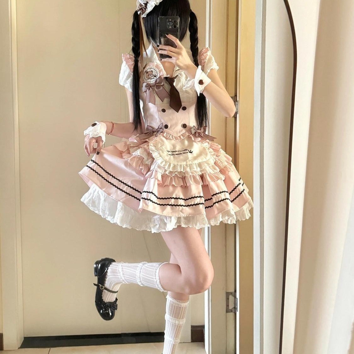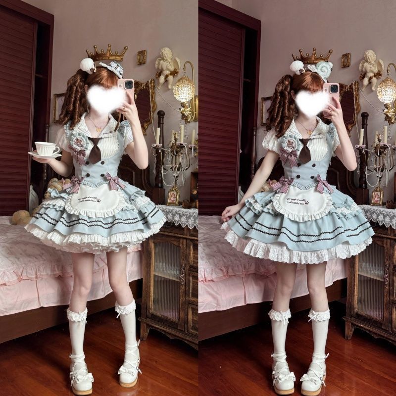 ロリータ かわいい甘美なパッチワークフリルシャツとウエストマークのフリルスカートセット