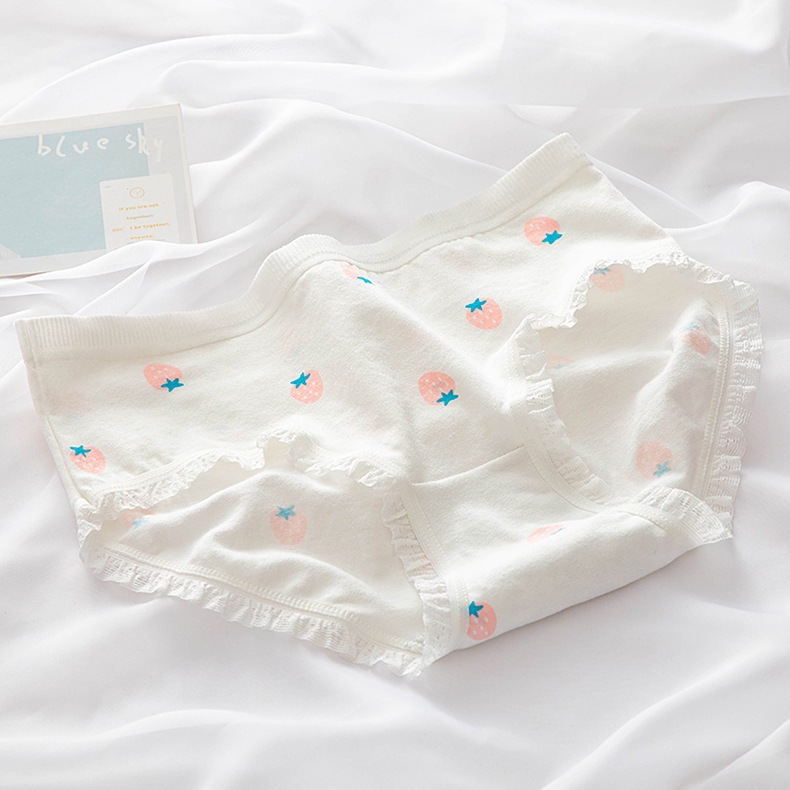 新作 日系 いちご柄 綿股 ミドルウエスト 通気 学生用ショーツ
