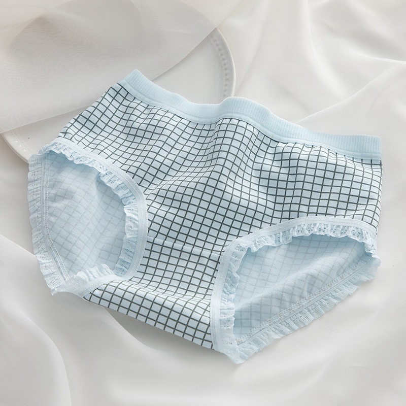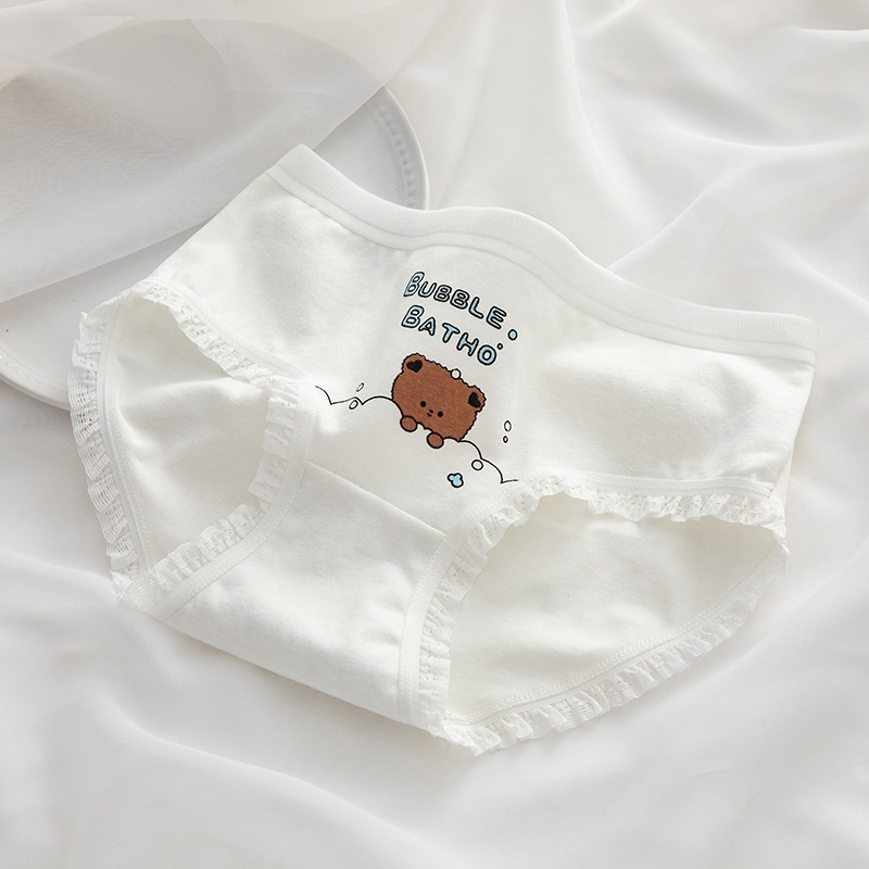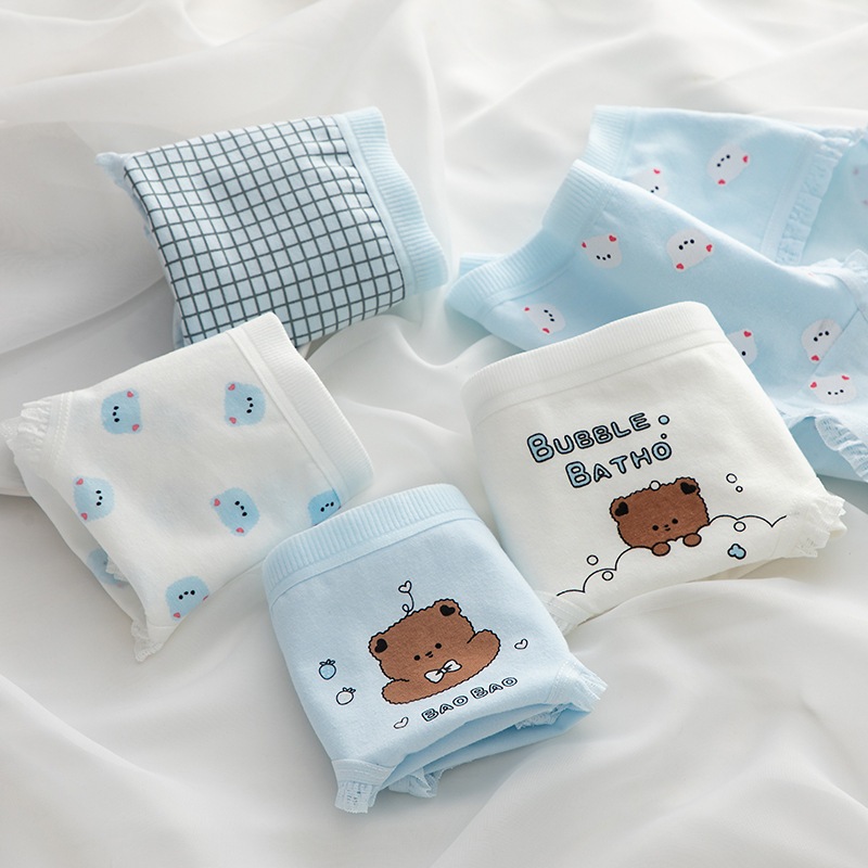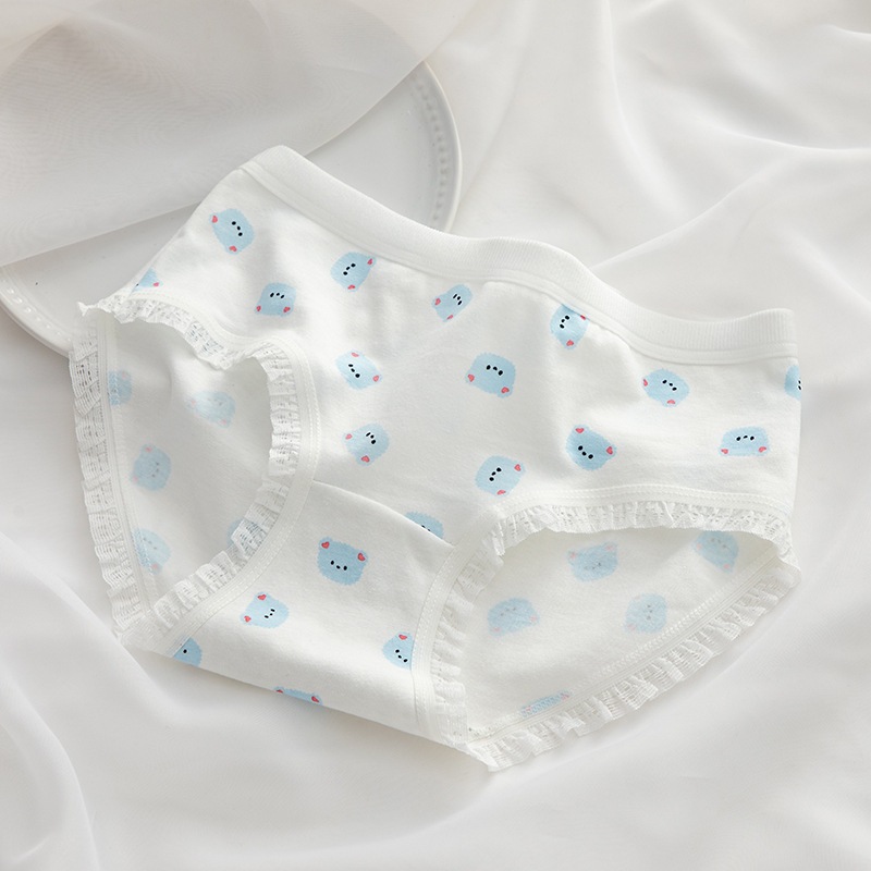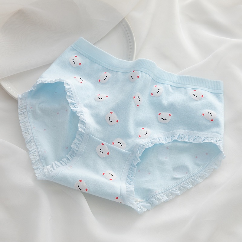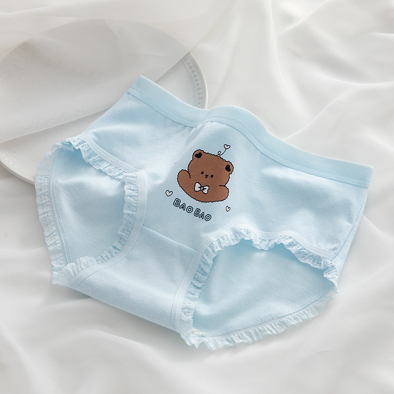 日系シンプル 水色 & ブラウンくま柄 綿股 ミドルウエスト ヒップカバー 学生用