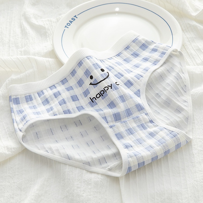 日系チェックショーツ 綿股 通気 ガーリー ミドルウエスト 学生用 レディースショーツ 卸売