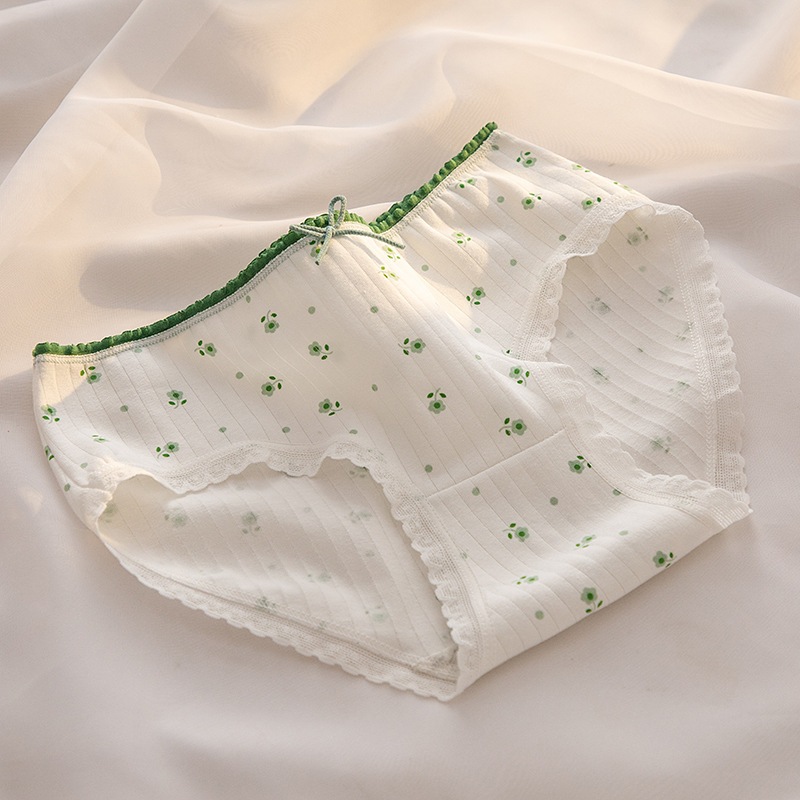 新作 日系グリーン 田園花柄 綿股 ミドルウエスト ヒップカバー 学生用 卸売