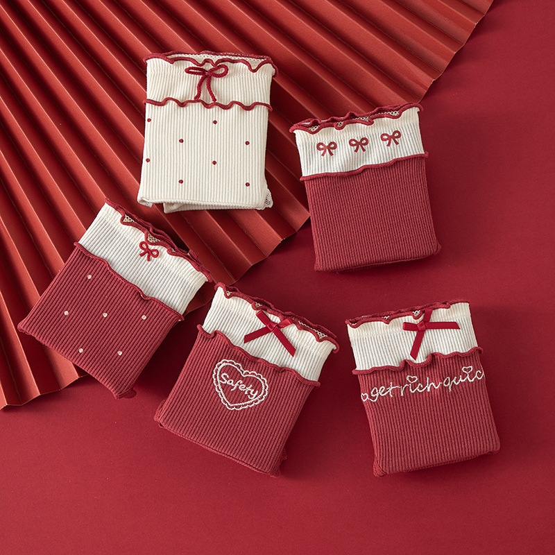 新作赤ショーツ 綿 100% 10A 抗菌 ロング股 スイートガーリー 本命年