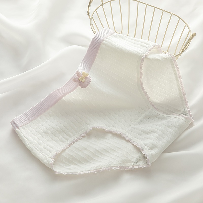 日系レディースショーツ 甘いフリル 綿抗菌 ミドルウエスト 通気 キャラクター 学生用