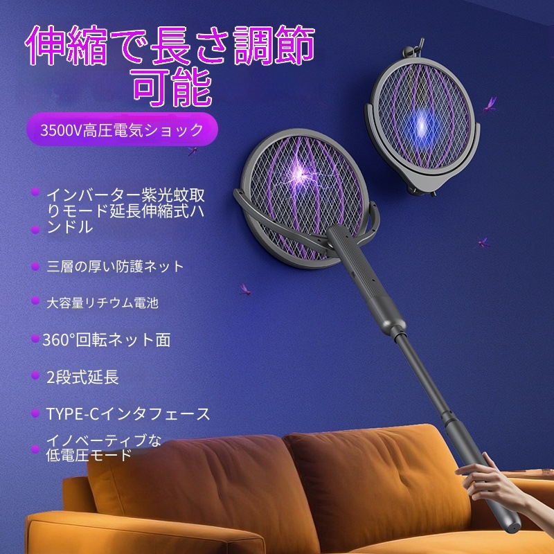 電撃殺虫ラケット 強力 電撃殺虫器 蚊取りラケット ハエたたき 屋外用 屋内用 はえたたき 害虫 電流 虫退治