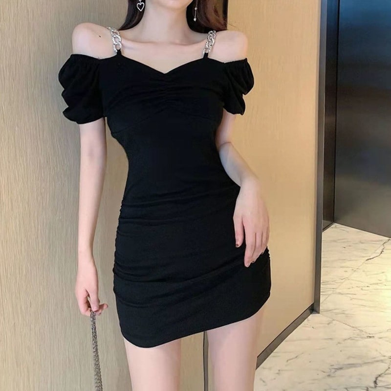 セクシーなオフショルダーのストラップドレス 2026年夏 新作 高級感あふれる 官能的なオフショルダーデザイン ボディラインを美しく引き立てるフィット&フレアスカート