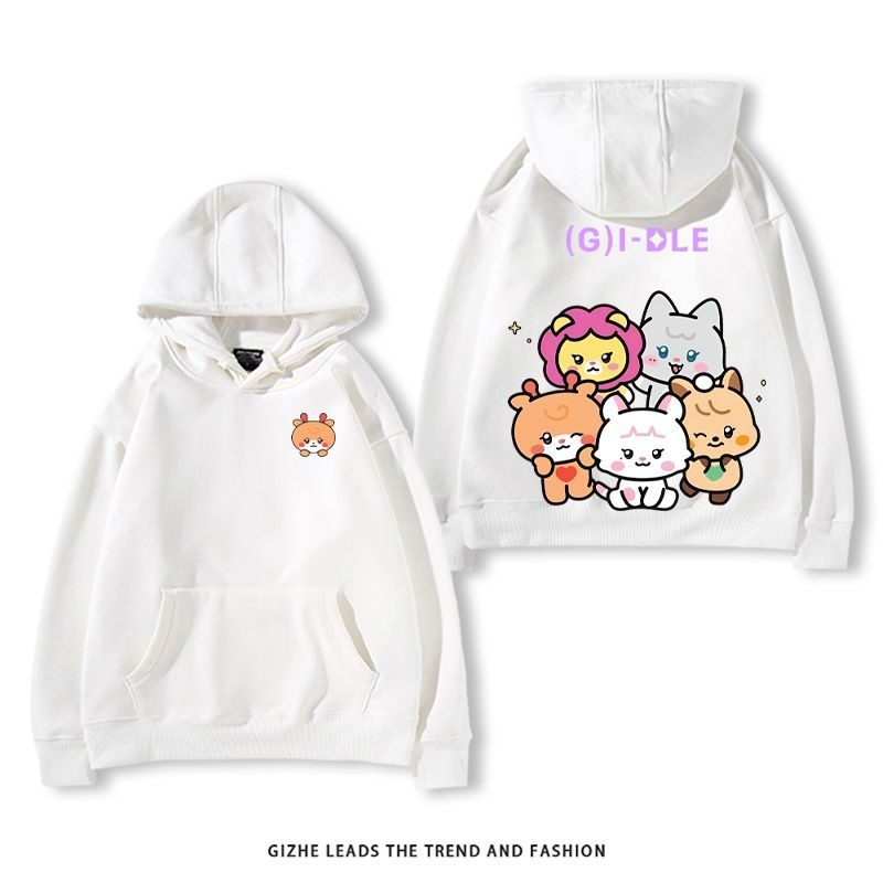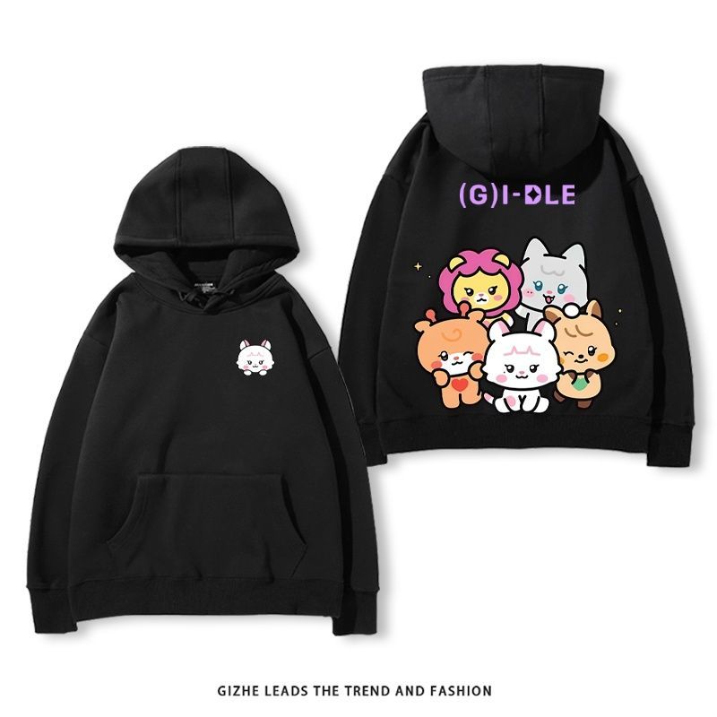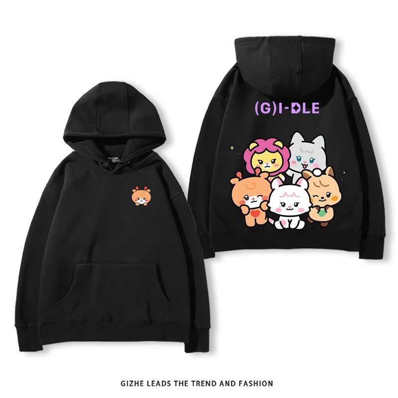 (G)I-DLE メンバー コンサート カートゥーン キャラクター パーカー 男女兼用 秋冬 裏起毛 応援 フーディー