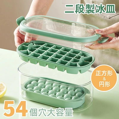 製氷皿 製氷器 大容量 二段式 取り出しやすい 保存ケース 蓋付き アイストレー アイストレイ 製氷機 四角氷 方型氷 丸型 丸い氷 アイスボール 冷蔵庫 冷凍 大きい シリコン かわいい 球状 球体