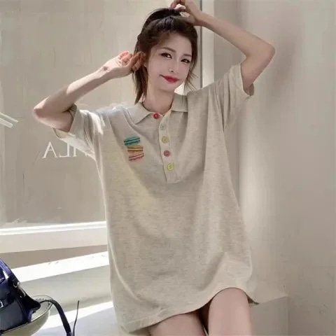 LA PELLE【tシャツ 半袖 レディース】オーバーサイズT グレー 高級感 ラペル 半袖 Tシャツ レディース 夏 ゆったり ミディアム丈 2026新作 おしゃれ 上質 ポロシャツ