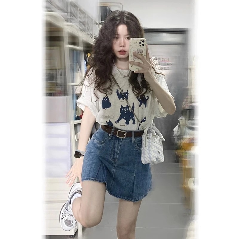 【tシャツ 半袖 レディース】アメリカン レトロ 日系 キュート 子猫 半袖 Tシャツ レディース 夏 ゆったり 学生 半袖 合わせやすい トップス オーバーサイズT