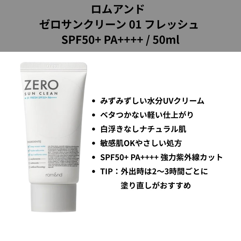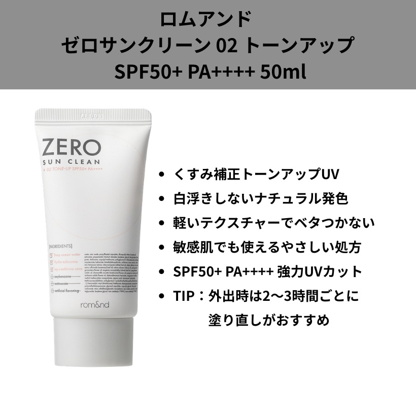 ロムアンド保湿サンスクリーン/トーンアップクリーム SPF50+ PA++++ 50ml 2種類選択/日焼け止め