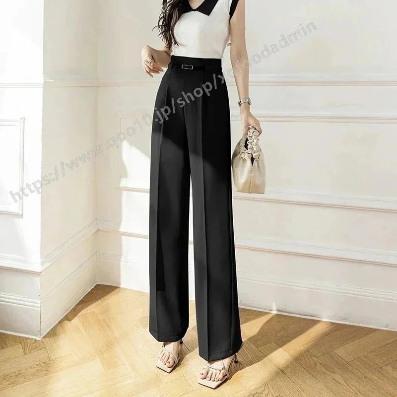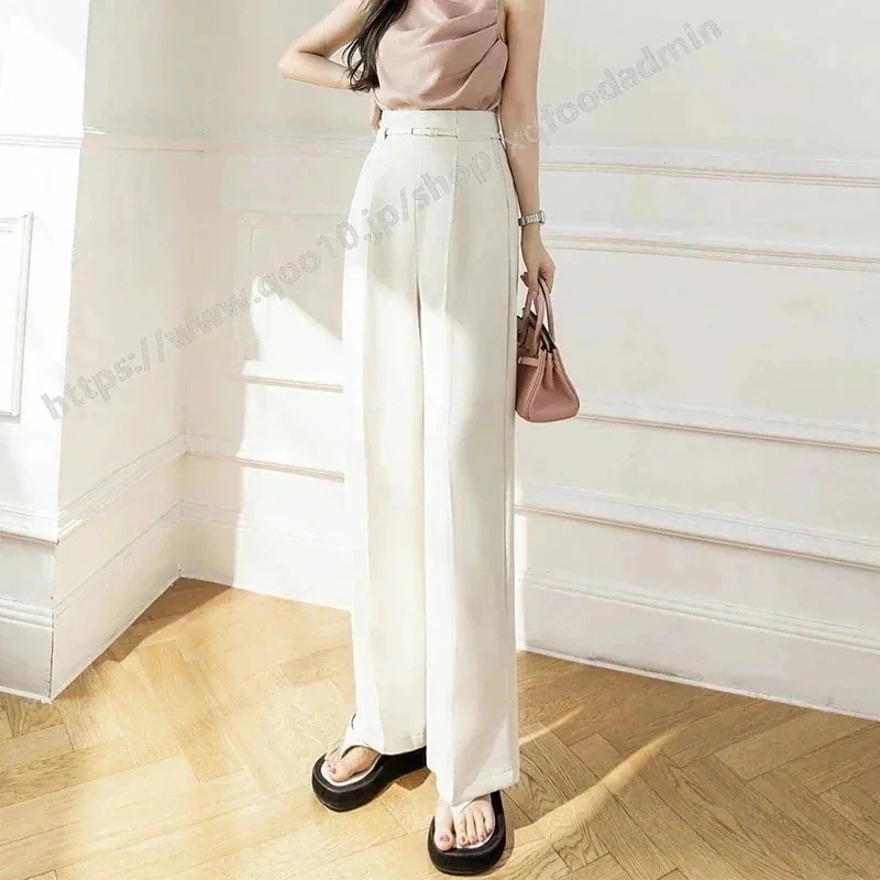 センタープレス ワイドパンツ テーパードパンツ タックパンツ ストレート レディース ベルト オフィスパンツ 大人カジュアル きれいめ ボトムス フォーマル S M L 2L