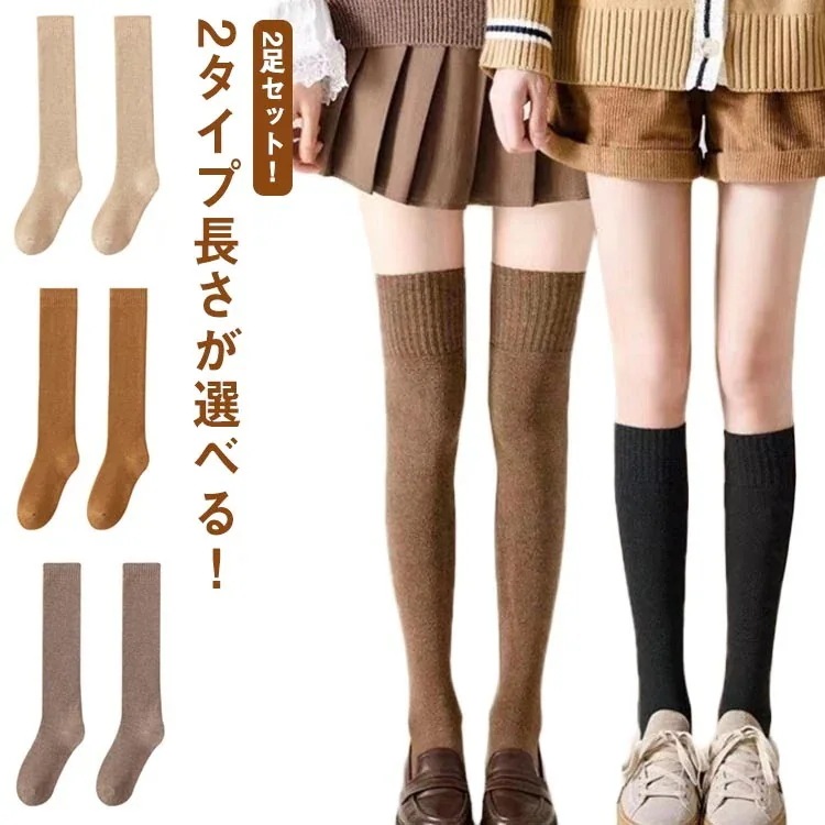 オーバーニーソックス 綿 厚手 レディース コットン ロングソックス ニーハイソックス 暖かい 靴下 サイハイソックス 防寒 2足セット 保温性 裏起毛 ハイソックス くつ下 くつした 弾性