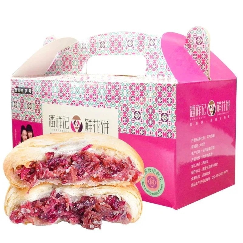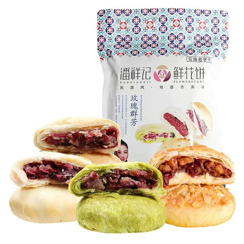 雲南名物食用バラの花餅1箱-お菓子抹茶紫芋味デザートスナック伝統スイーツお茶請けに