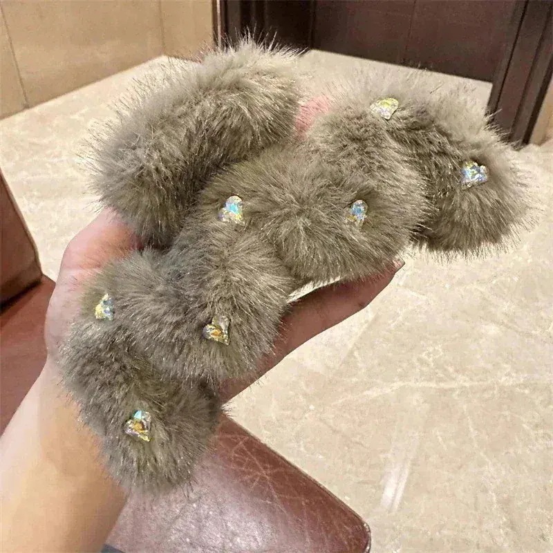 韓国軽い毛皮クリップおしゃれなキラキラダイヤモンド大きな髪ボリュームインシャーククリップヘアアクセサリー1296