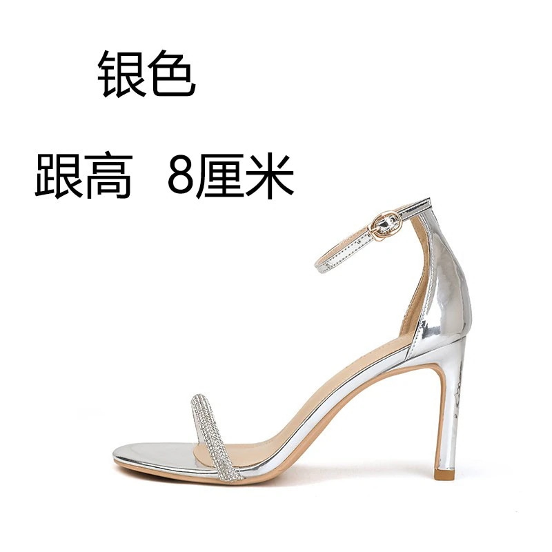 シルバーのストラップサンダル 2025年春夏新作 フェアリー風 上品で着回し自在なパテントレザー・ラインストーン付き細ヒールサンダル 女性用ウェッジソールサンダル