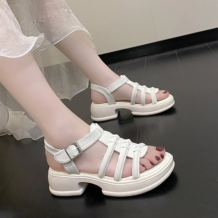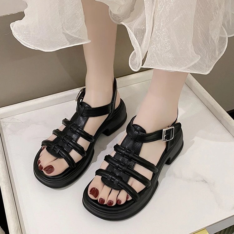 2026年夏の新作レディースサンダル 厚底 編み込みサンダル ワンストラップ フェアリー風ローマサンダル 厚底