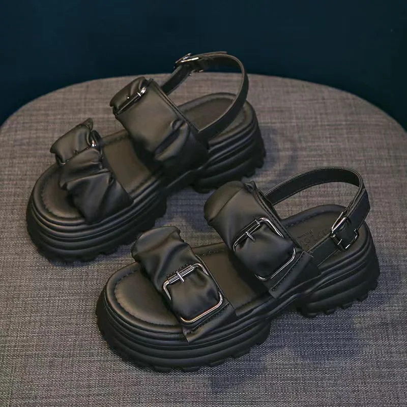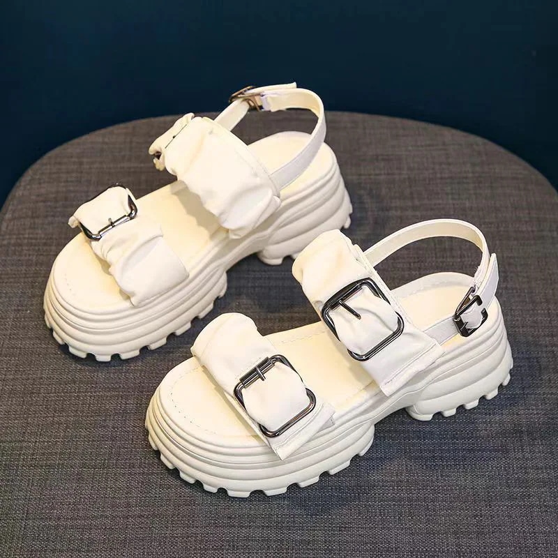 2025年夏新作 レディースサンダル 厚底 ヒールアップ ストラップサンダル プラットフォーム ローマ風 カジュアル 無地 厚底