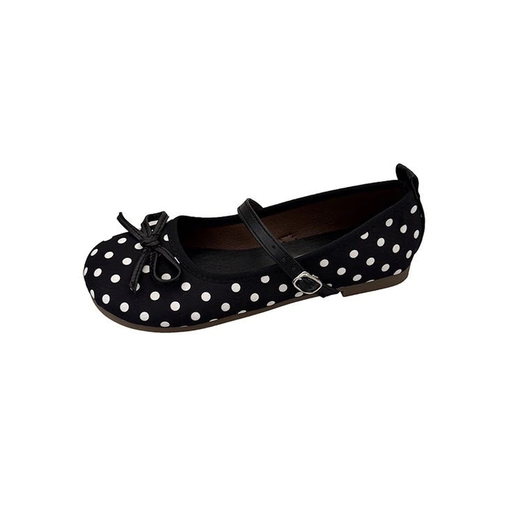 ラウンドトゥバレエシューズ 2026年春夏新作 ニッチなドット柄マリーシューズ カジュアルでファッショナブルなフラットシューズ
