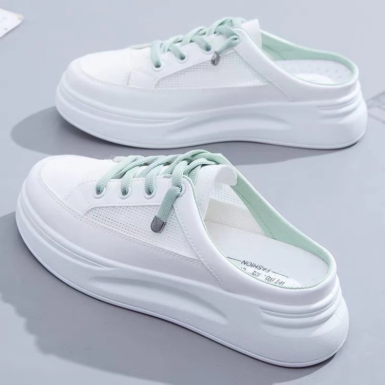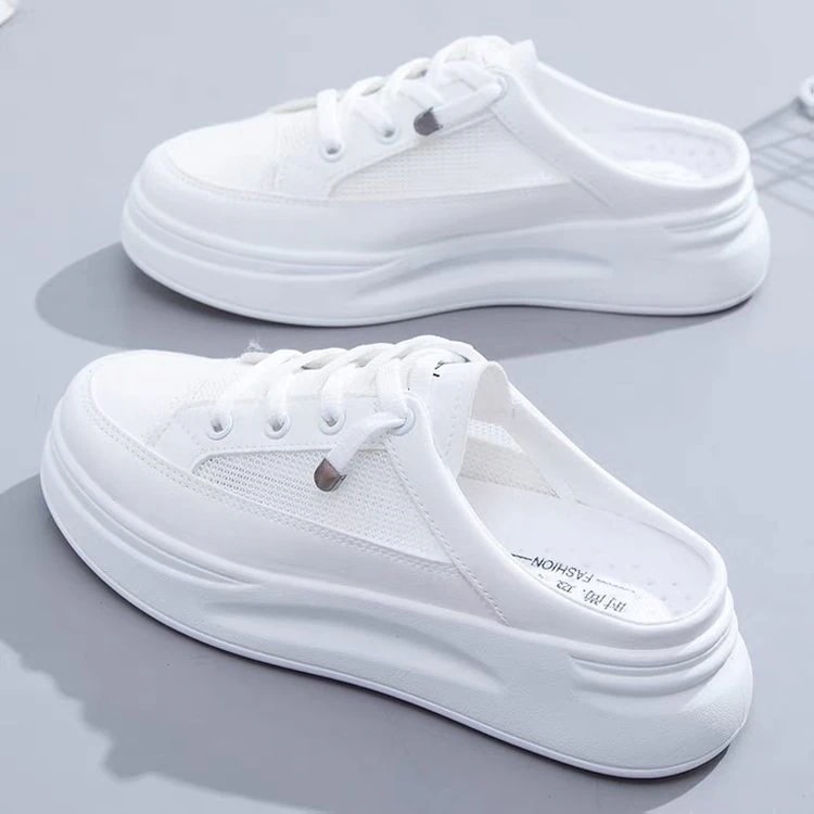 韓国風バオトウスリッポン レディース 2026年新作 春夏用 メッシュ素材 通気性 カジュアルシューズ 履きやすいヒールレス ホワイトスニーカー 厚底 カジュアルシューズ
