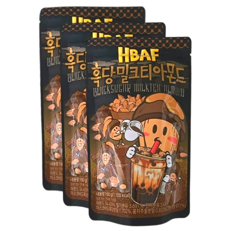HBAF黒糖ミルクティーアーモンド 120g×3袋 韓国お菓子 ナッツスナック デザートナッツ 甘いおやつ ミルクティー風味 カリフォルニア産アーモンド 人気スナック