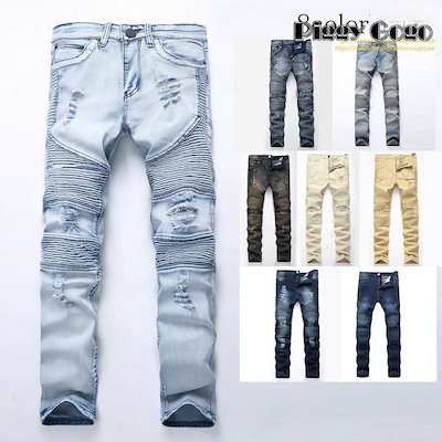 (在庫一掃)メンズ バイカーパンツ デニム パンツ ジーンズ ライダースデニム バイクジーンズ ライダースジーンズ ダメージ ウォッシュ クラッシュ 2024