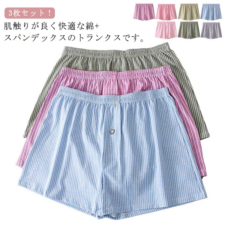 トランクス メンズ 前開き 3枚セット トランクス メンズ 下着 ストライプ柄 大きいサイズ まとめ買い 3枚セット インナー アンダーウェア 前開き ボタンあり オールシーズン 綿 コットン 前開