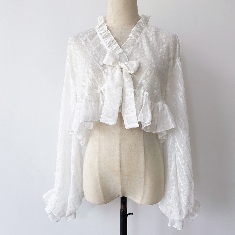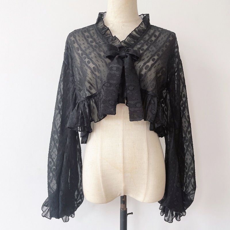 【即納】Q10最安値!ロリータシフォンパフスリーブショート丈乙女リボン百合JKカーディガン日焼け止めジャケット 二次元