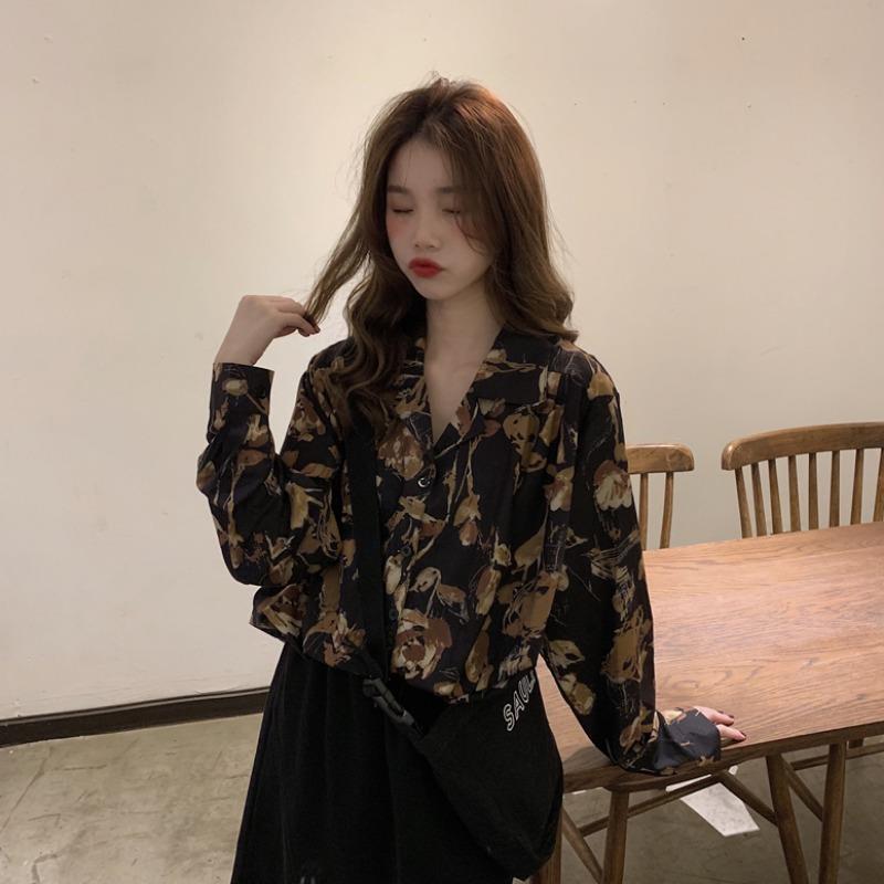 【即納】Q10最安値!シースルートップス トップス ブラウス デザインヴィンテージ長袖プリントシャツ着痩せ 百掛け 新作 さらっと羽織れる:サテンシャツ 今っぽシアーシャツ