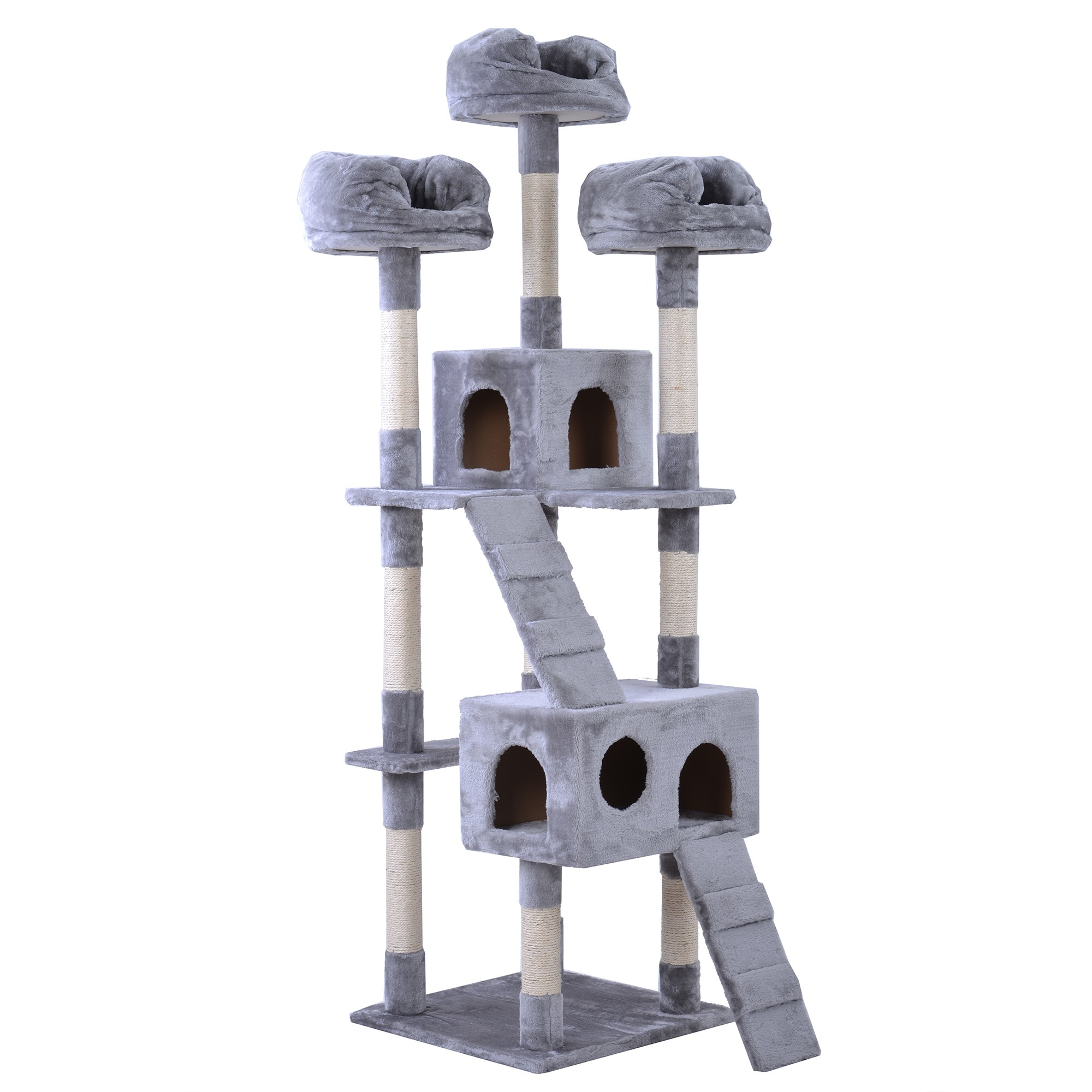 106【元SKU:TX020828】キャットタワー 据え置き おしゃれ 全高185cm 爪とぎ 麻紐 豪華なハウス付き 隠れ家 バスケット 多頭飼い グレー gray