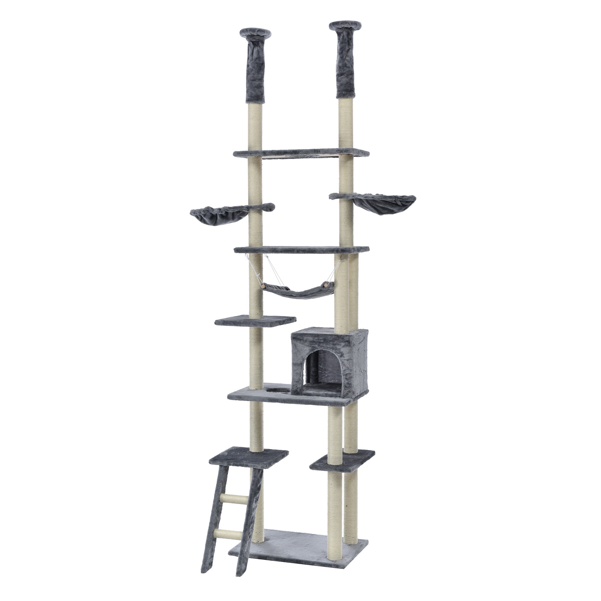 98【元SKU:TX188118】キャットタワー 突っ張り おしゃれ 全面麻紐 全高235-258cm 【グレー】
