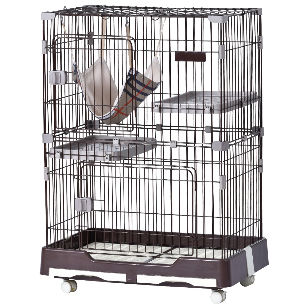 77猫 ケージ キャットケージ ペットケージ キャスター付 猫ゲージ 大型 多頭飼い ネコドア キャットハウス 1段2段可能 留守番 保護 脱走防止 おしゃれ (2段,ブラウン)