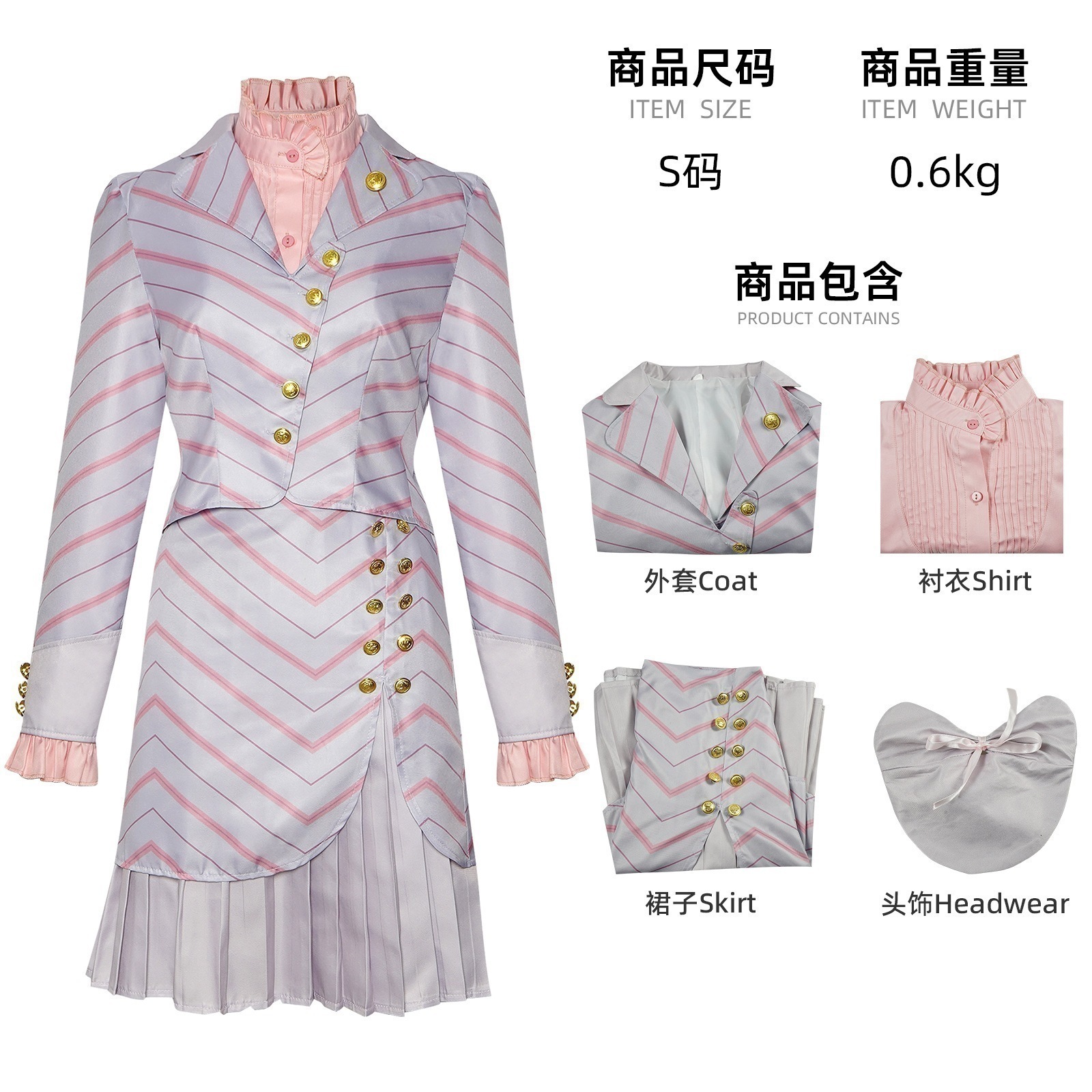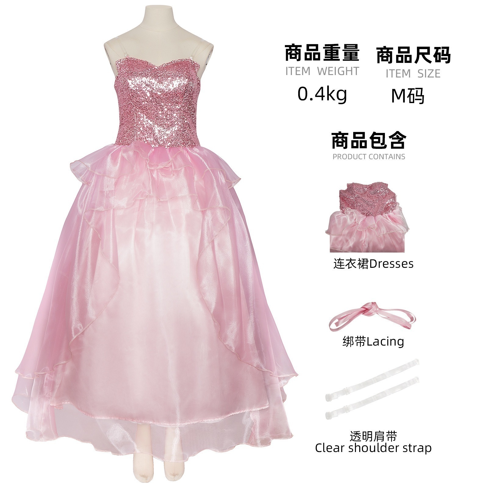 【迅速な出荷】ハロウィーン魔法悪い魔女服グリンダピンクストライプセットコスプレ衣装